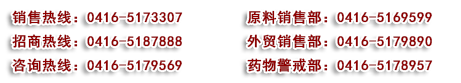 ●招商熱線:0416-5187888            ●藥物警戒部:0416-5178957            ●咨詢熱線:0416-5179569